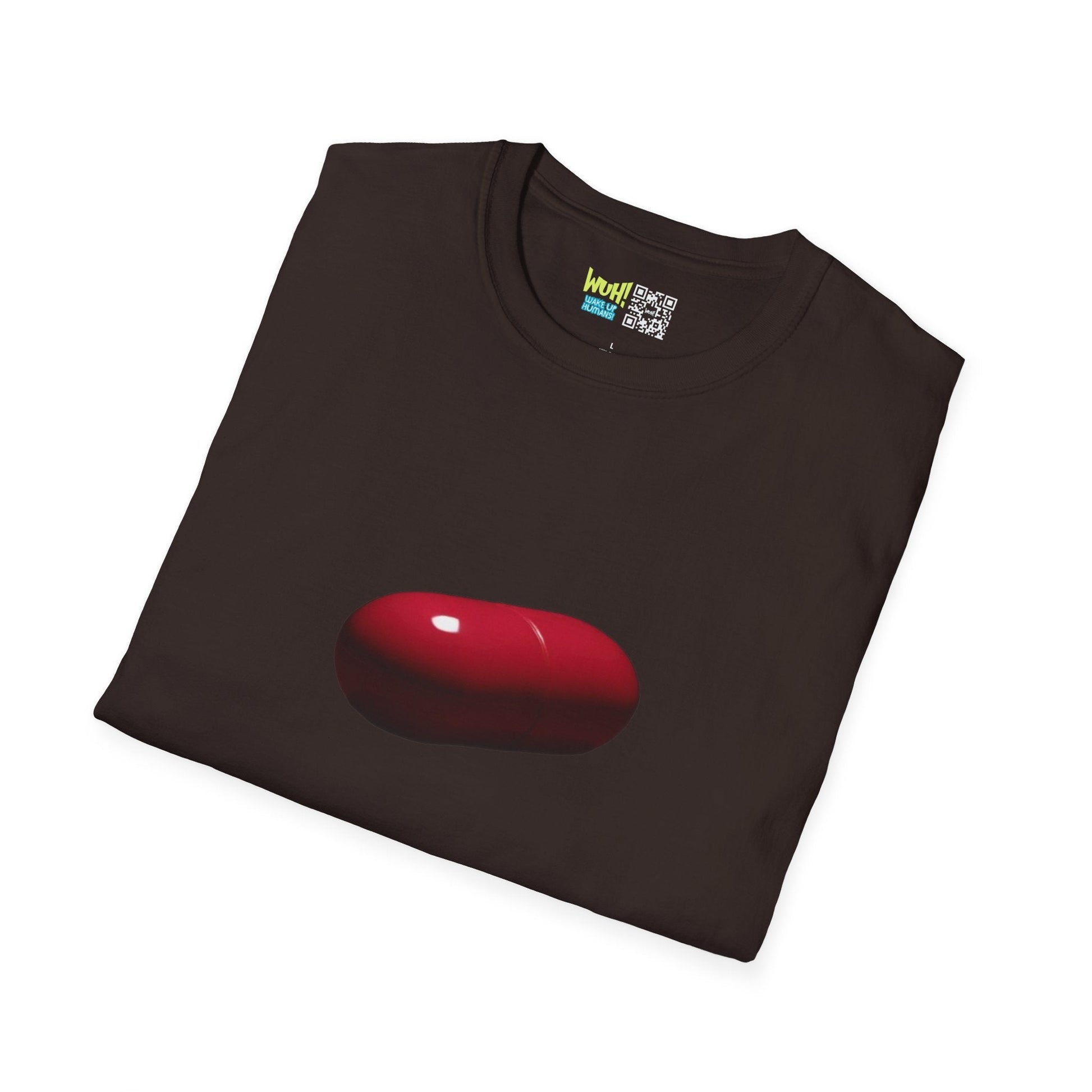 This red pill T-Shirt symbolizes Neo in the film The Matrix where he chooses the red pill. It gives a cool and edgy vibe, perfect for fans of The Matrix movie. It is relevant for movie enthusiasts, sci-fi fans, and those who appreciate iconic film references. Ideal for gifting on birthdays, Christmas, or any movie-themed celebrations.
